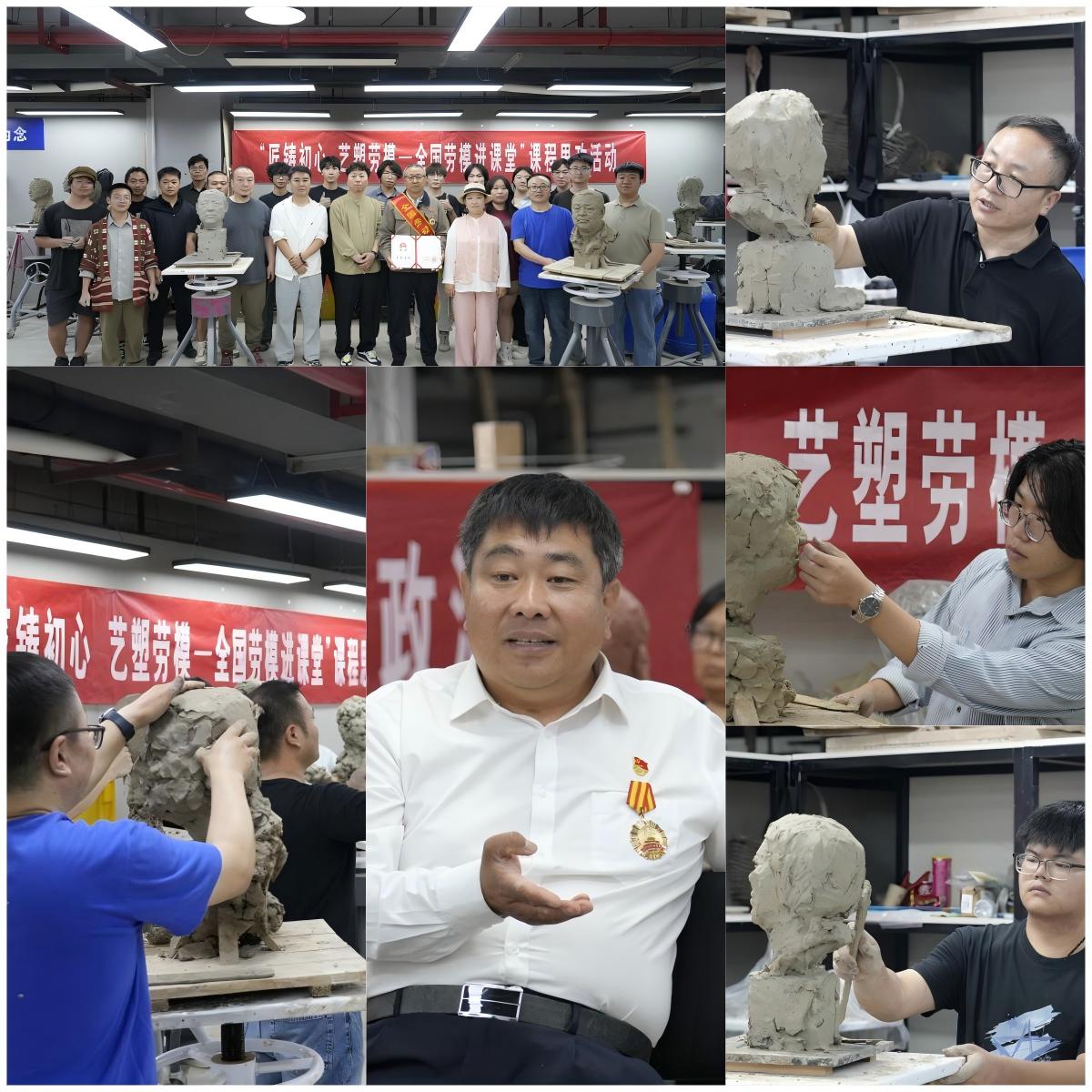 雕塑与公共艺术学院党总支举办了“匠铸初心艺塑劳模——全国劳模进课堂”课程思政系列活动,邀请田文斗、贾拴成等全国劳模走进《肖像创作》课堂,将劳模精神融入塑像实践,通过“劳模宣讲+艺术创作”形式,引导学生在泥痕中感悟劳动价值与大国工匠精神。