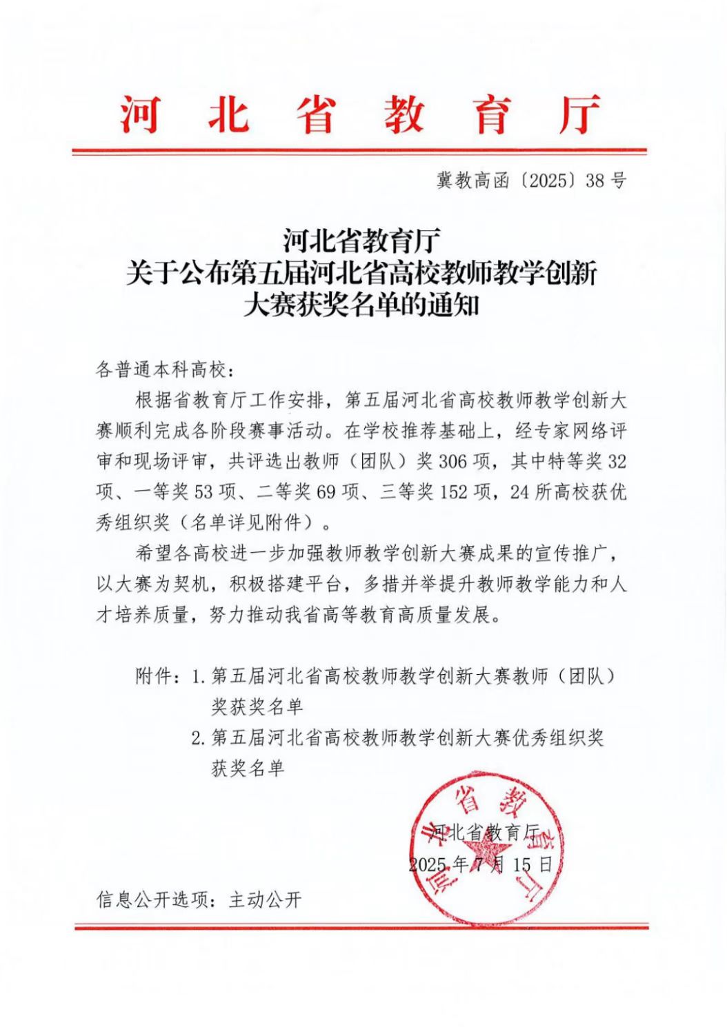近日,由河北省教育厅主办的第五届河北省高校教师教学创新大赛暨全国高校教师教学创新大赛河北赛区选拔赛在河北大学落下帷幕,beat365官网教师在此次比赛中斩获二等奖一项,三等奖两项。