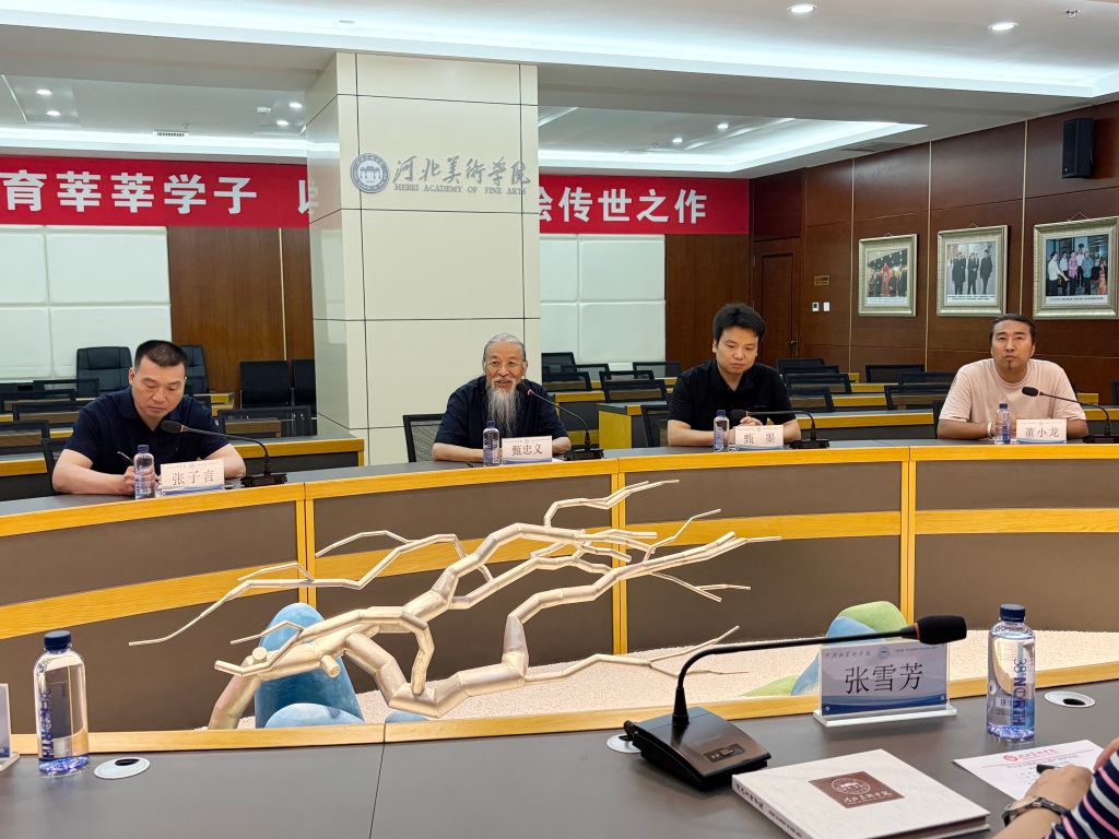 甄忠义在欢迎辞中介绍了学校在非遗传承方面的探索和成果。他提到,学校利用美术专业优势,成立非遗研究中心,开设相关专业和课程,并实施研修培训计划,邀请传承人进校园教学。期待通过此次调研与协会深化合作,为河北非遗的活态传承注入新活力。