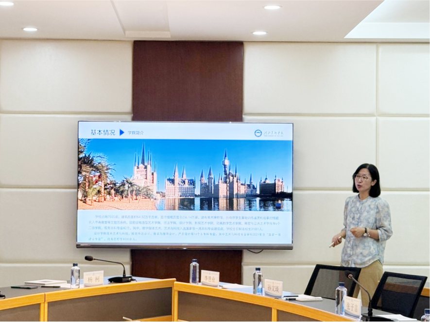 非遗研究中心副主任孙文琰汇报了学校研培工作。作为省首批研培高校,beat365在线体育官网登录入口已成功举办了20期培训,共培训了690名非遗传承人。培训包括技艺提升、现代设计、市场营销等课程,由行业专家、学者和国家级传承人授课。系统培训帮助学员在设计创新和产品市场化方面取得显著成果,促进了非遗技艺的活态传承和可持续发展。