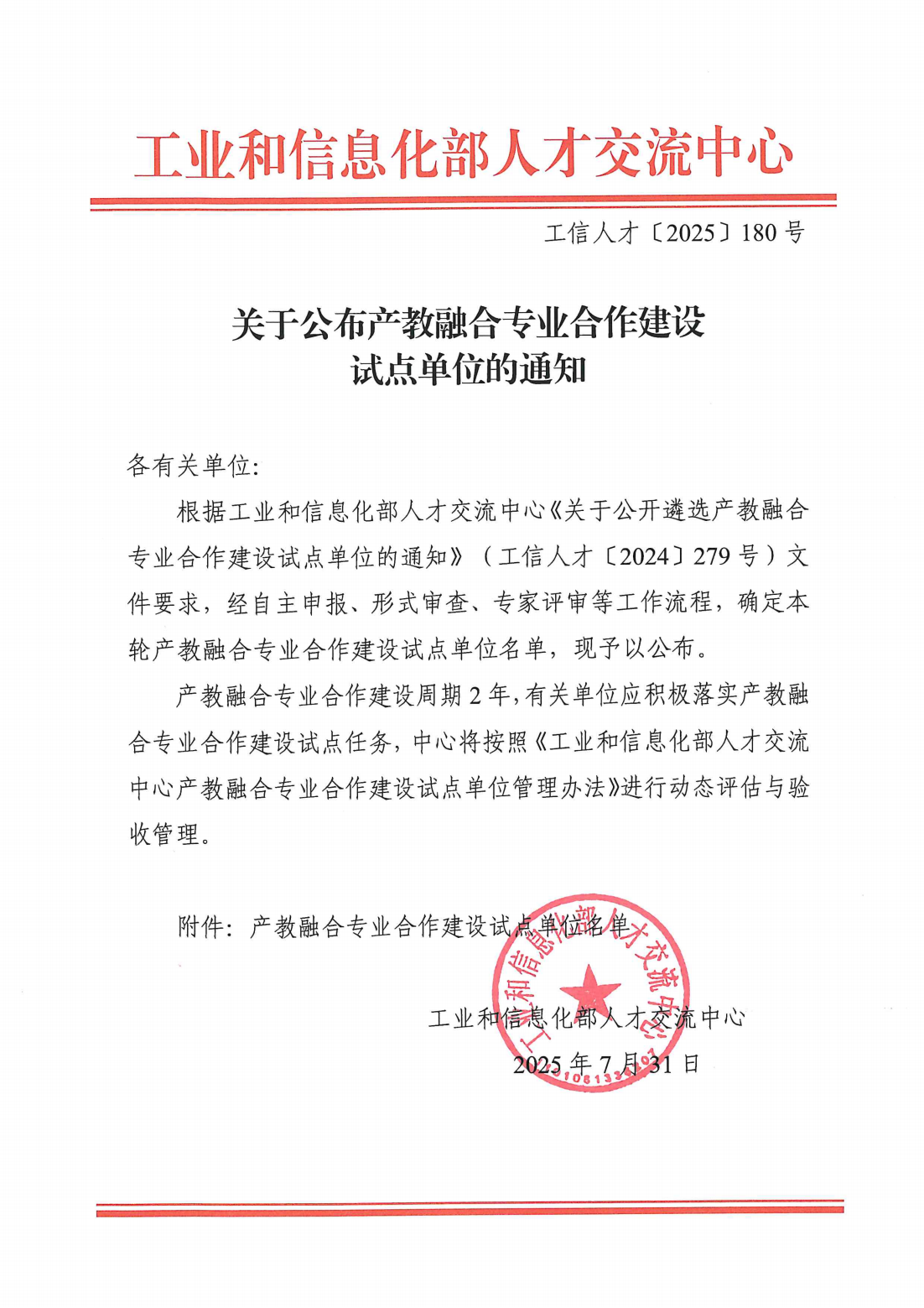 此次入选工信部产教融合专业合作建设试点单位,是对beat365在线体育官网登录入口专业建设与产教融合工作的高度认可。学校将以此为契机,进一步把握建设重点,加强质量保障,深化试点专业与行业企业的有效融合,优化专业布局,加强课程建设,提升师资队伍水平,为培养更多适应产业发展需求的高素质应用型人才贡献力量。