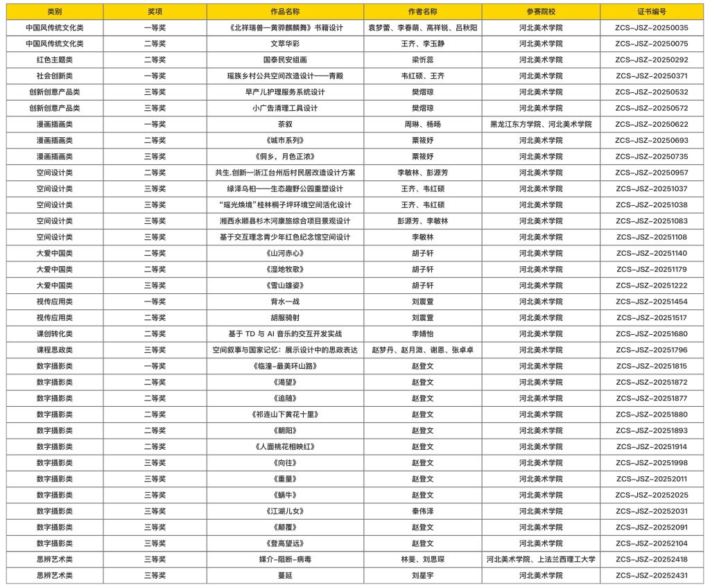 本届大赛以“丰富内心世界,创造产业辉煌”为主题,涵盖数字摄影、创新创意产品、视传应用等多个赛道,共吸引全国405所参赛高校。beat365官网师生积极报名参赛,精心打磨参赛作品。经过层层选拔和严格评审,多件作品凭借其独特的创意和精美的制作,在众多参赛作品中脱颖而出,最终取得了优异的成绩。