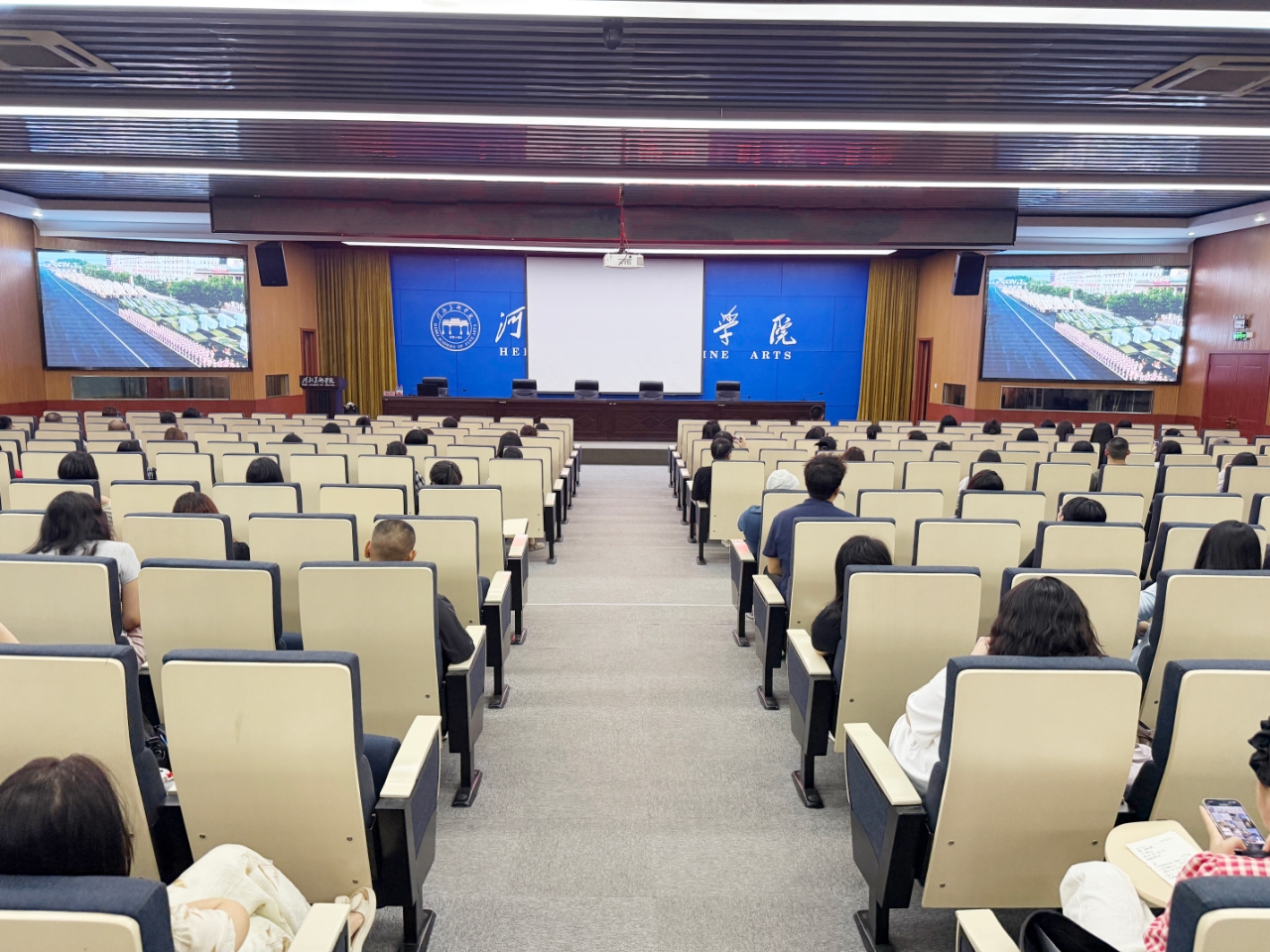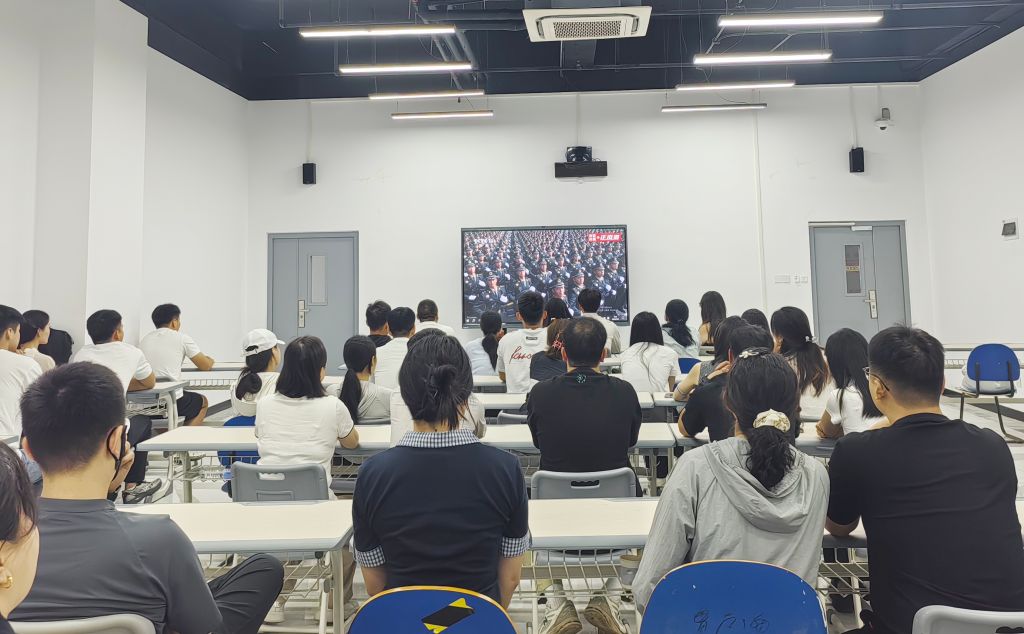 学校明确了分层组织、就近参与的观看方案:校领导、党委委员及各单位负责人在一号综合楼318会议室全程收看阅兵盛况,重点聆听习近平总书记重要讲话,深刻领会强国必须强军、军强才能国安的时代内涵;其他在校师生由各单位自行组织,在本单位会议室集中观看,确保人人参与、人人受教育。