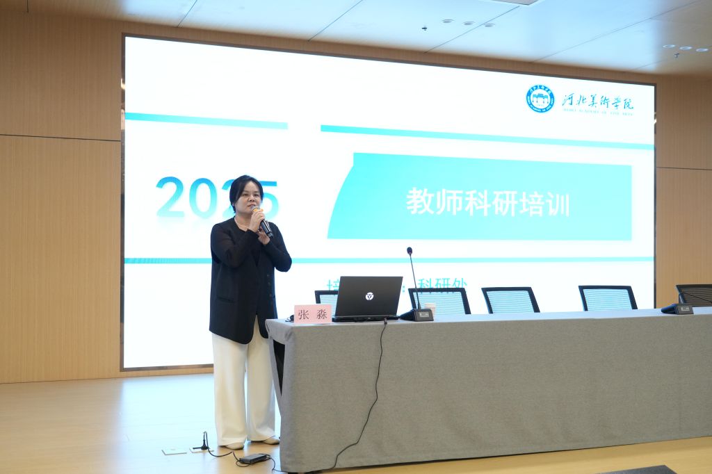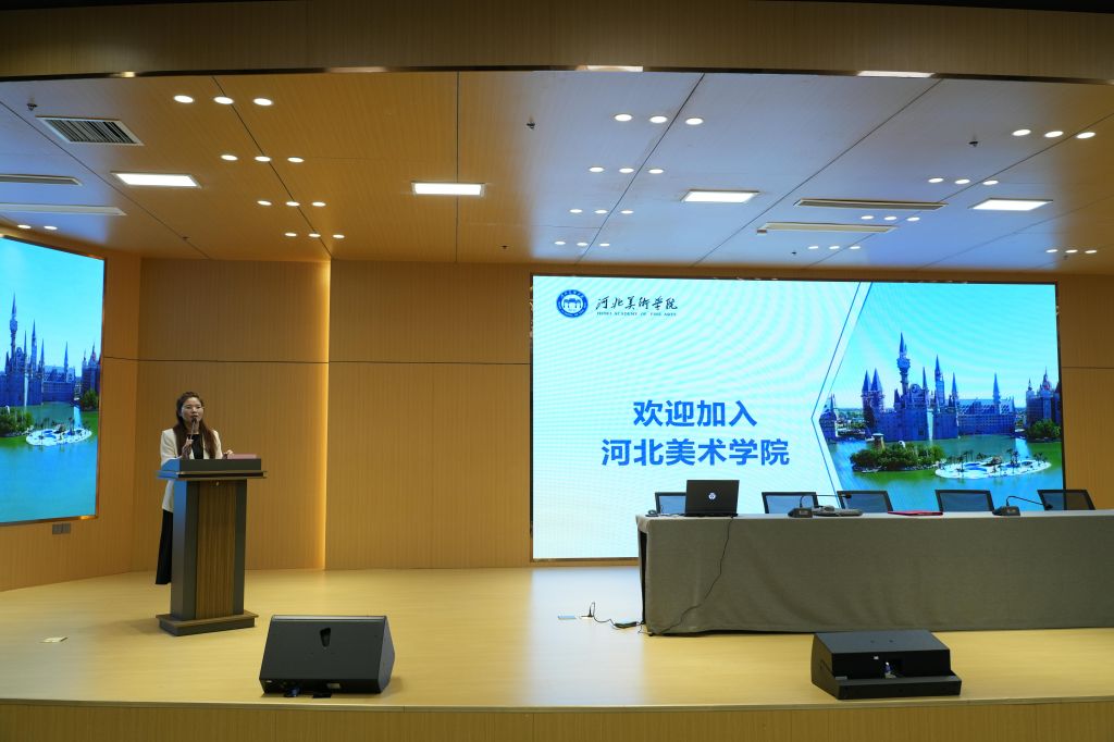 设计学院博士教师张博代表新入职教师发言,倡导大家做一个“笼天地于形内,挫万物于笔端”的美术教育的从业者。