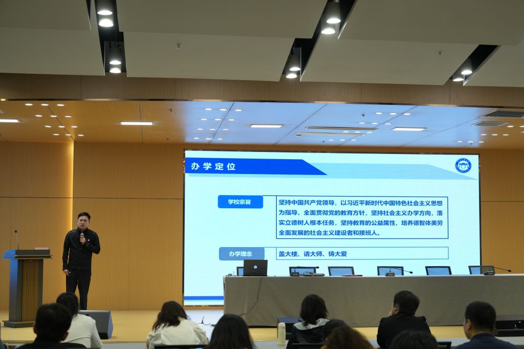 党政办公室主任周哲作"校史·校训·校情·校规"专题报告,帮助新教师快速了解学校发展脉络。
