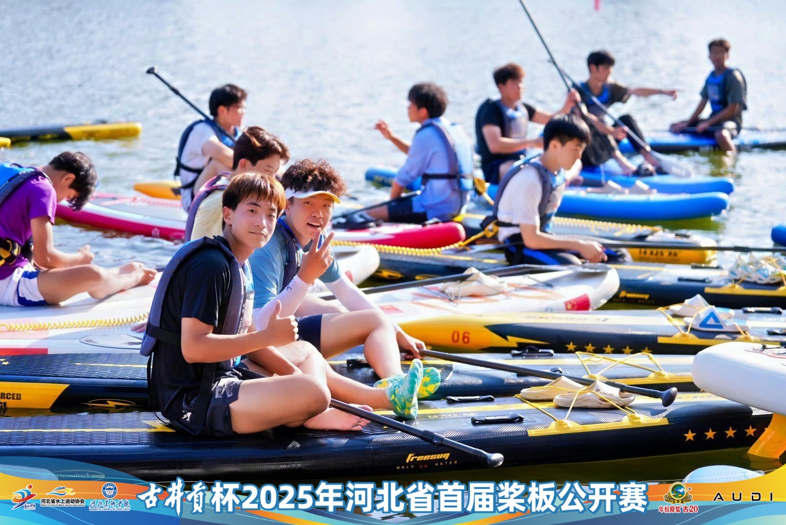 9月20日,由河北省体育局水上运动中心、河北省水上运动协会、石家庄市体育局、新乐市委市政府主办,新乐市文化广电体育和旅游局、beat365在线体育官网登录入口承办的“古井贡杯”2025年河北省首届桨板公开赛在beat365在线体育官网登录入口激情开赛。本次赛事共有27支队伍近300名运动员参赛。