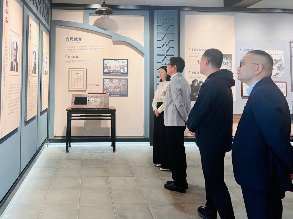 裴红彬一行在东亭镇相关负责同志的陪同下考察了晏阳初平民教育历史文化街区、中国乡建溯源培训研学苑,详细了解晏阳初平民教育思想的历史背景、核心内涵及在当地的实践成果,深入考察培训研学苑在乡村建设人才培养、文化传承创新等方面的运作模式和经验做法,为进一步深化校地合作寻找契合点。