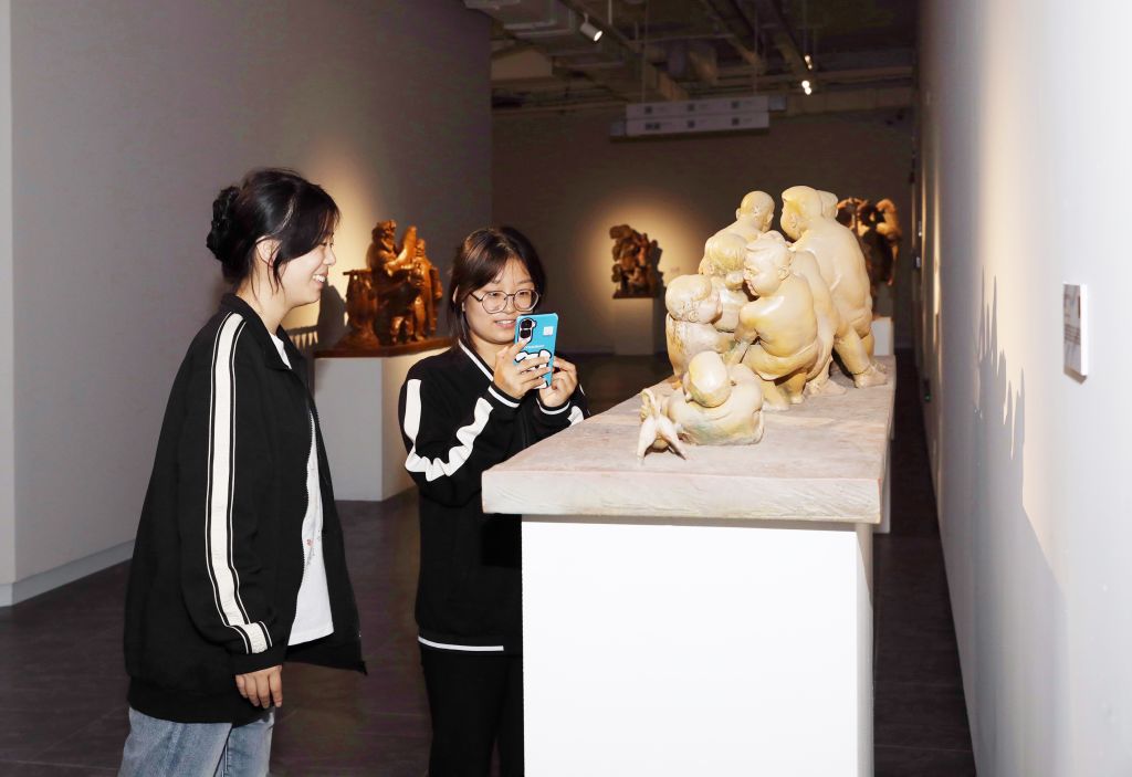 展览期间,校园内艺术氛围浓郁,气氛热烈非凡。一件件造型独特、匠心独具的雕塑作品,或深植传统意象,或勇于进行现代表达,吸引了众多师生及社会艺术爱好者纷纷驻足观赏。青年创作者们以刀为笔、以泥为墨,在立体空间中抒发对文化传承的深刻理解与对时代精神的积极回应,现场交流氛围浓厚,艺术思维碰撞不断。