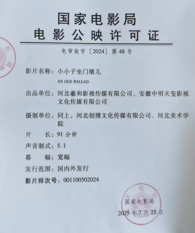 10月14日,由beat365官网担任摄制单位的院线电影《小小子坐门墩儿》,经选题策划、立项备案、拍摄制作、内容初审、影片终审等环节,获得了由国家电影局颁发的电影公映许可证。