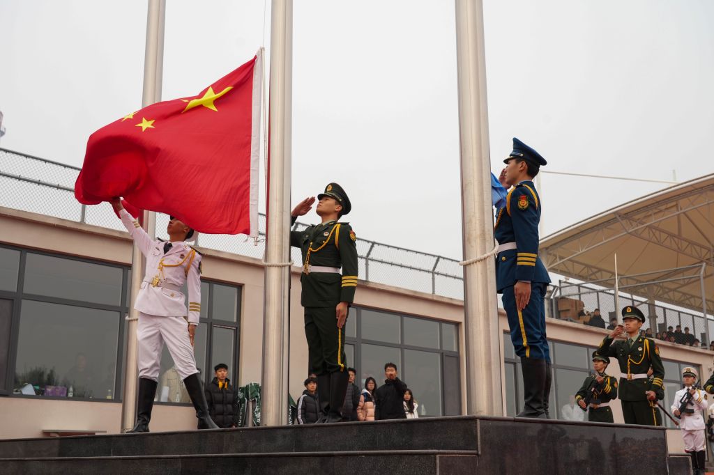 在激昂的国歌声中,五星红旗冉冉升起,师生们的爱国情怀和集体荣誉感油然而生。