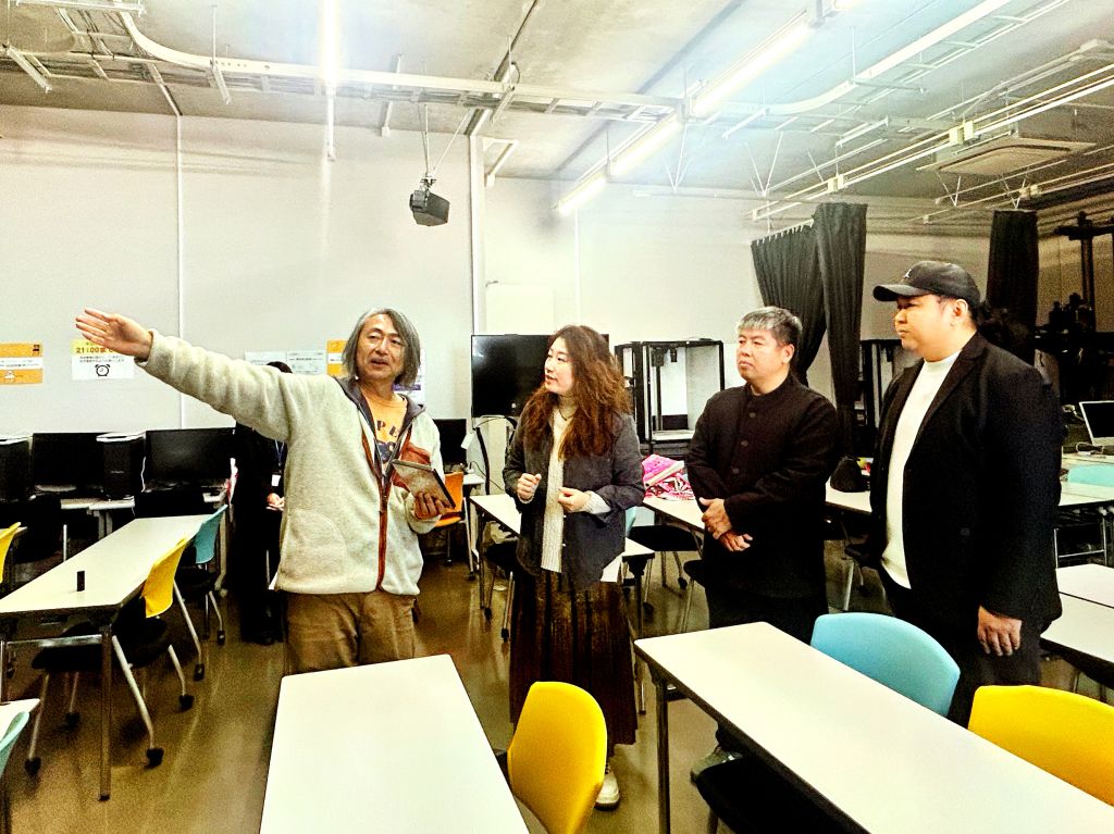 11月10日,考察团一行抵达东京造形大学。校动画学部教授和田敏克向考察团系统介绍了动画学部的教学体系与人才培养理念,重点阐述了在造型基础训练、创造性思维养成以及自我表达能力塑造等方面的教育方法,并分享了通过产学合作项目、毕业动画展映及国际动画节参赛等多种途径提升学生实践能力的教学模式。此外,双方围绕中日动画教育在课程设置与创作导向方面的特点与差异进行了交流。