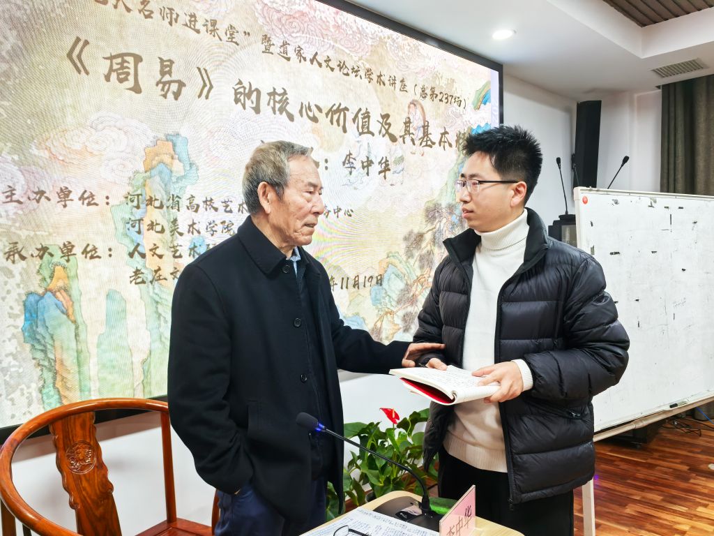 讲座围绕“《周易》的人文精神及其现代启示”展开,李中华系统阐述了《周易》思想体系中的核心要义。整场讲座内容丰富、逻辑严谨、深入浅出,现场互动踊跃,学术氛围浓厚。与会师生纷纷表示,通过此次讲座,不仅加深了对《周易》这部古老经典的认知与理解,更感受到了中华优秀传统文化的永恒魅力与时代价值,为人文艺术领域的教学、创作与研究提供了宝贵的理论滋养与思想启迪。