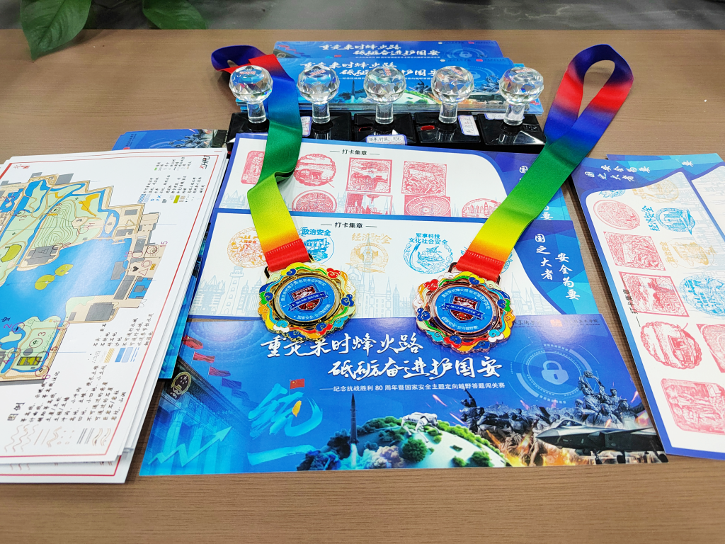 作为“国家安全教育”实践课的重要载体,此次课程筹备紧扣教学目标周密设计。课程组教师团队深挖红色文化情景园精神内涵,设计红色主题文创印章与“打卡集章”学习卡片,让学生在集章过程中感悟奋斗历程,强化历史使命认知。物资准备对标专业标准,教师全员参与南北校区精准测绘,反复踏勘校准点位,制成兼具实用性与教学性的赛事地图。现场红色标语、主题标语等环境布置融入课程元素,营造沉浸式育人氛围。