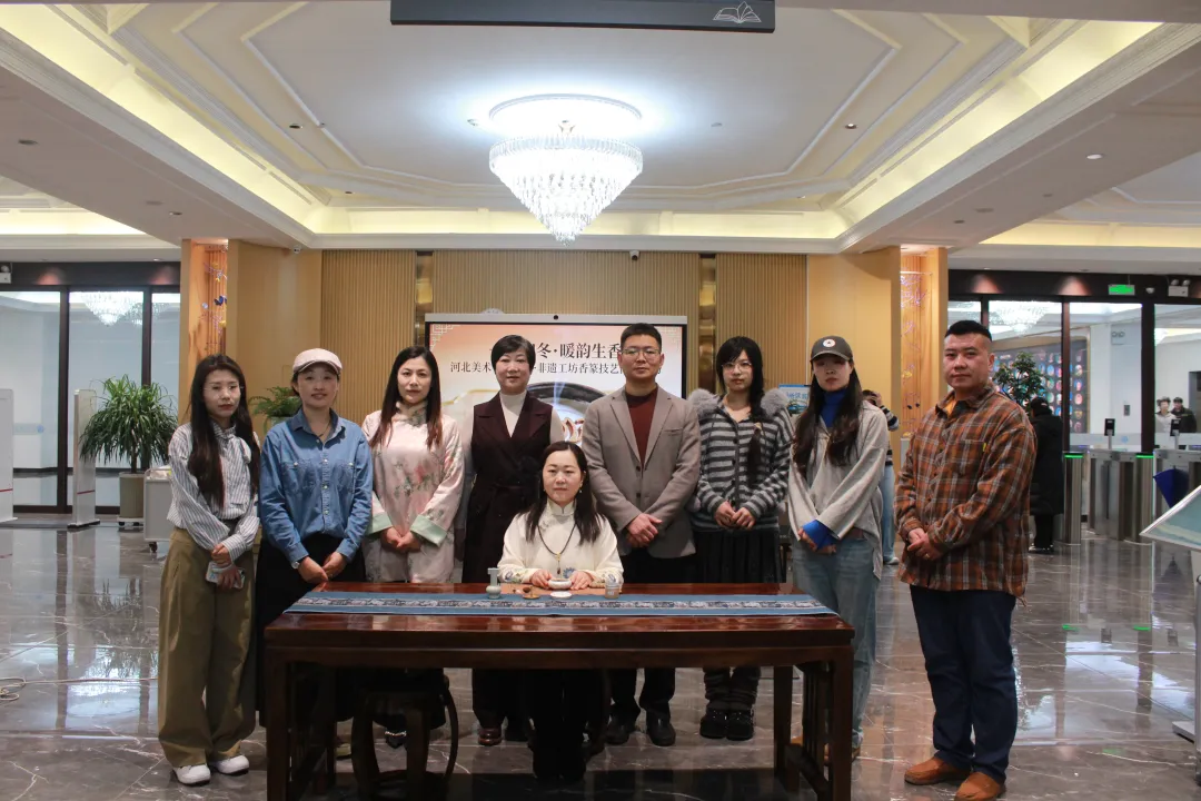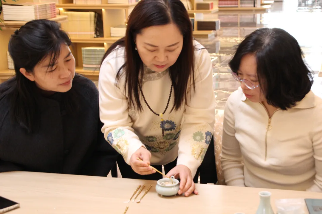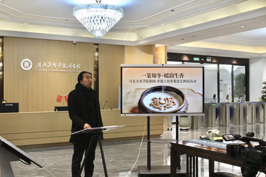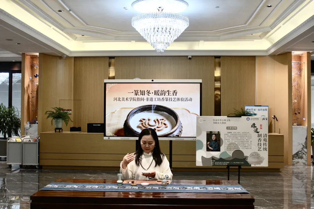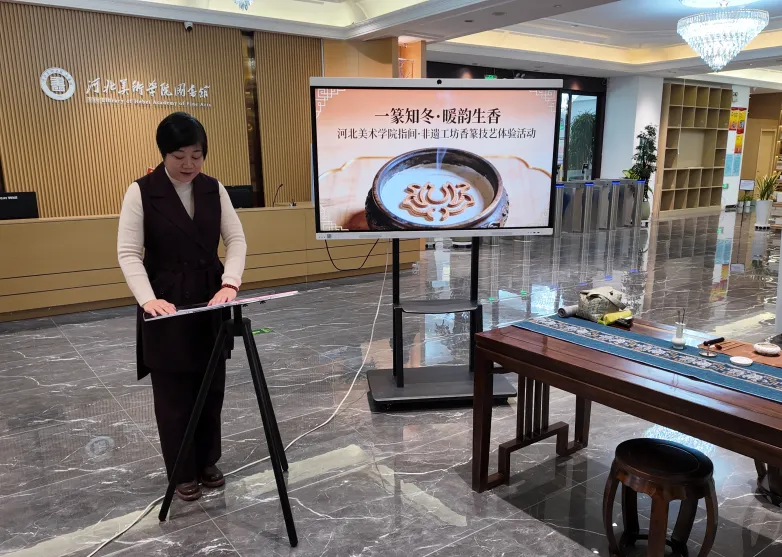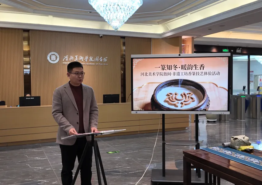 为深入贯彻落实高校文化育人使命,推动非物质文化遗产在校园的活态传承与创新融合,12月9日上午,beat365在线体育官网登录入口设计学院与图书馆联合共建的“指间·非遗工坊”在beat365官网三号图书馆成功举办“一篆知冬·暖韵生香”非遗香篆技艺体验活动。beat365在线体育官网登录入口设计学院院长董小龙,图书馆馆长李世新,国家级非遗清苑传统制香技艺第五代传承人杨雪艳,设计学院教师、工坊指导老师唐景词,设计学院非遗教研室主任、工坊指导老师周子祺,以及师生代表参加了活动。活动由图书馆用户学习支持中心主任、工坊指导老师白莉主持。