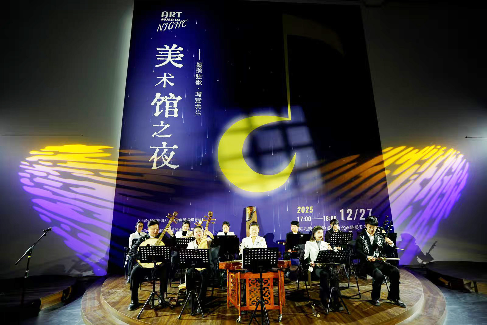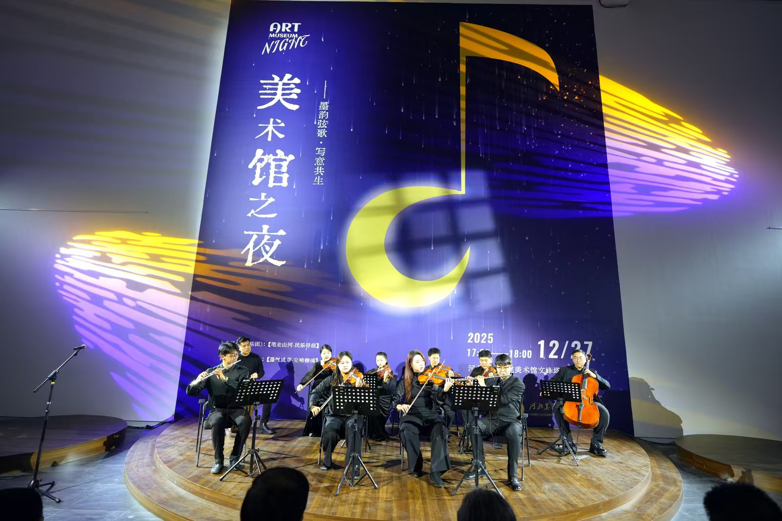 12月27日17:00,“美术馆之夜·墨韵弦歌·写意共生”系列公共教育活动第二场音乐会在beat365官网美术馆文峰塔展馆举行。活动以音乐对话绘画,打破感官边界,为现场观众呈现了一场“音画共生”的沉浸式美学体验。