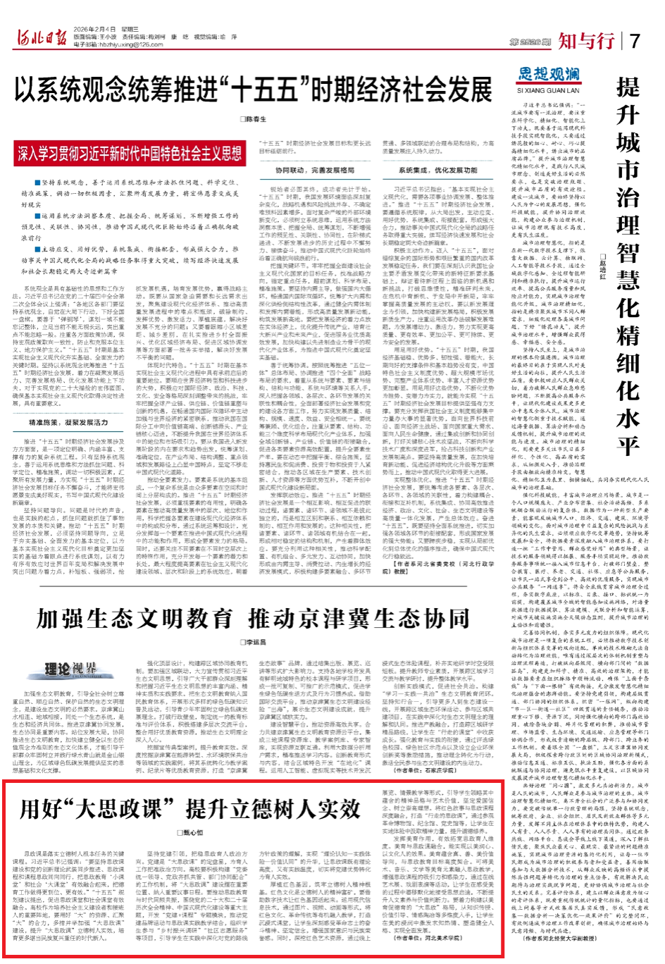 近日,beat365在线体育官网登录入口党委副书记、副校长甄心恒在《河北日报》理论版(“知与行”专栏)发表文章《用好“大思政课” 提升立德树人实效》。
