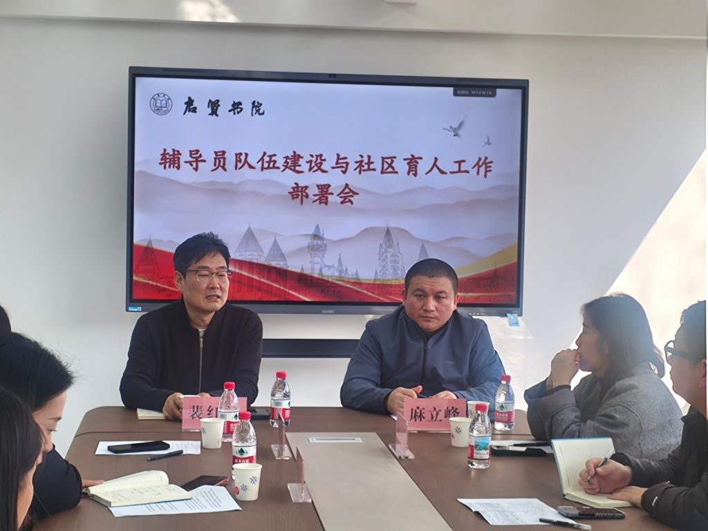 为进一步夯实辅导员队伍建设根基,深化一站式学生社区育人工作实效,3月11日,启贤书院召开辅导员队伍建设与社区育人工作部署会。校党委书记裴红彬,党委副书记、副校长麻立峰,及学生工作处副处长姚春龙、孙小慧到书院指导辅导员队伍建设和社区育人工作。会议由启贤书院负责人孙娟娟主持,书院全体专职辅导员参会,共同为书院社区育人工作谋篇布局、凝心聚力。