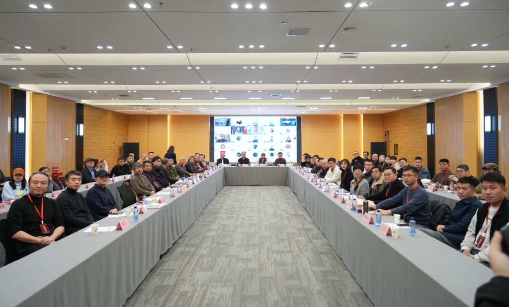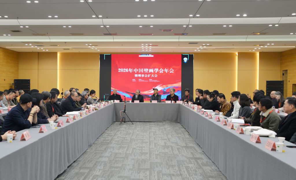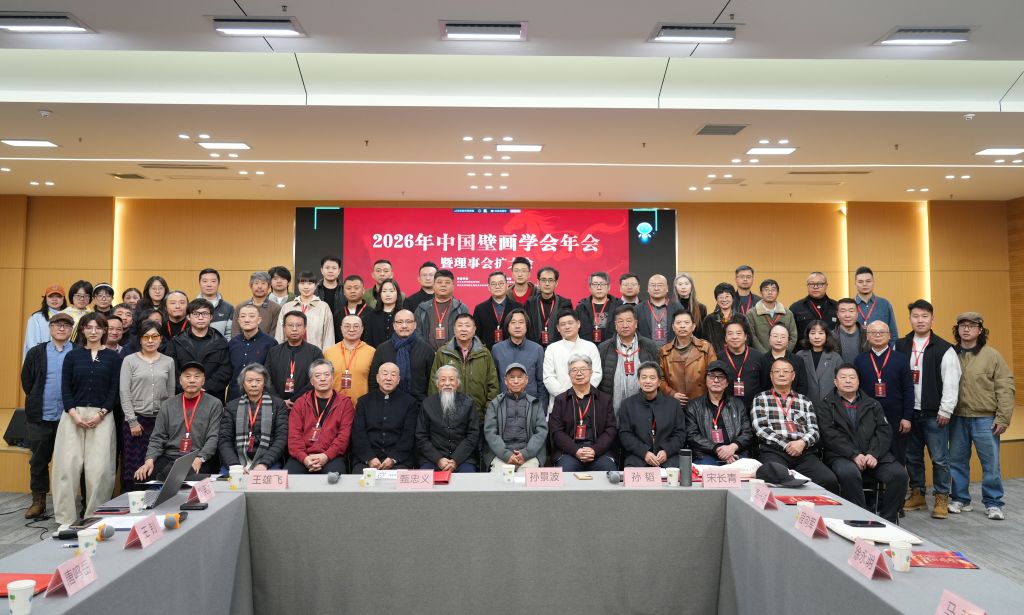 中国壁画学会会长、中央美术学院国家主题性美术创作研究中心主任孙韬带领与会人员学习了党的二十届四中全会精神,强调壁画艺术创作要牢牢把握时代脉搏,服务于国家文化发展战略。学会秘书长、北方工业大学建筑与艺术学院教授宋长青作《中国壁画学会2025年年度工作报告》,系统回顾了过去一年学会的各项工作成果。孙韬对文旅部提出的2026年工作要点进行了解读,并进一步阐述了《2026-2027年中国壁画学会工作计划及发展方向》。