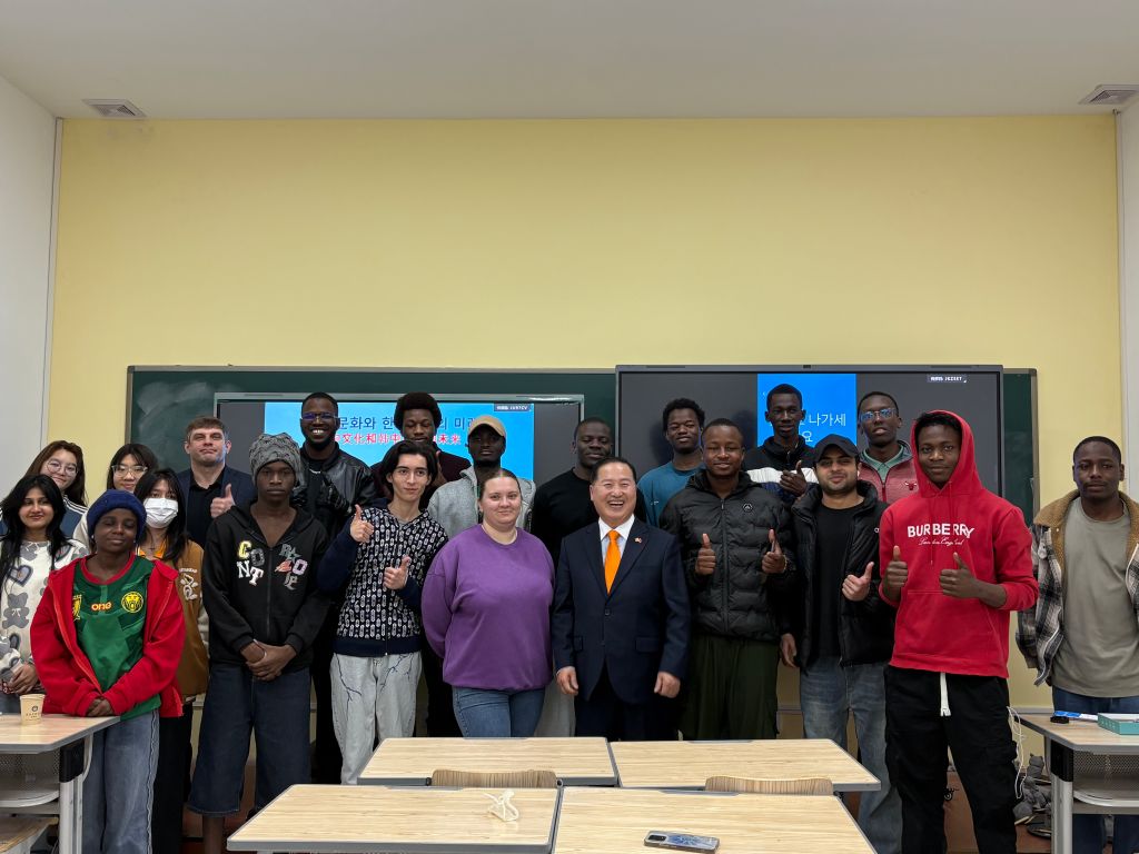 李昌虎围绕中韩文化差异与共通点与留学生展开深入交流,分享了韩国文化特色与相关见解,并客观分析了中韩文化在思维方式、价值观念、生活习惯等方面的异同,引导留学生以理性、包容的视角看待不同文化。
