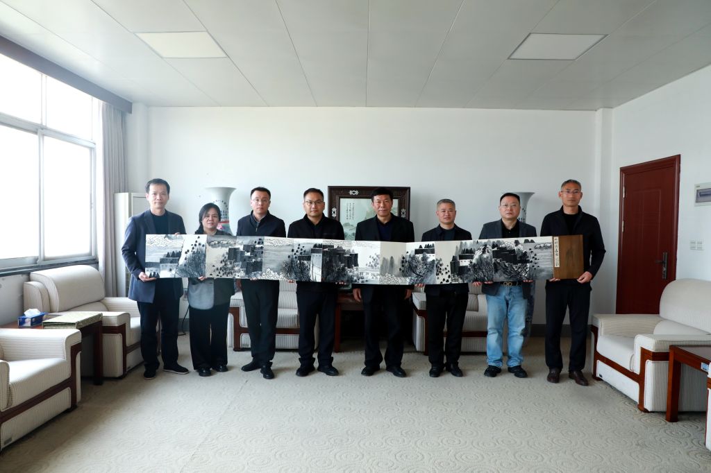 甄心恒代表学校向湖北工程学院赠送作品《山水清逸图》