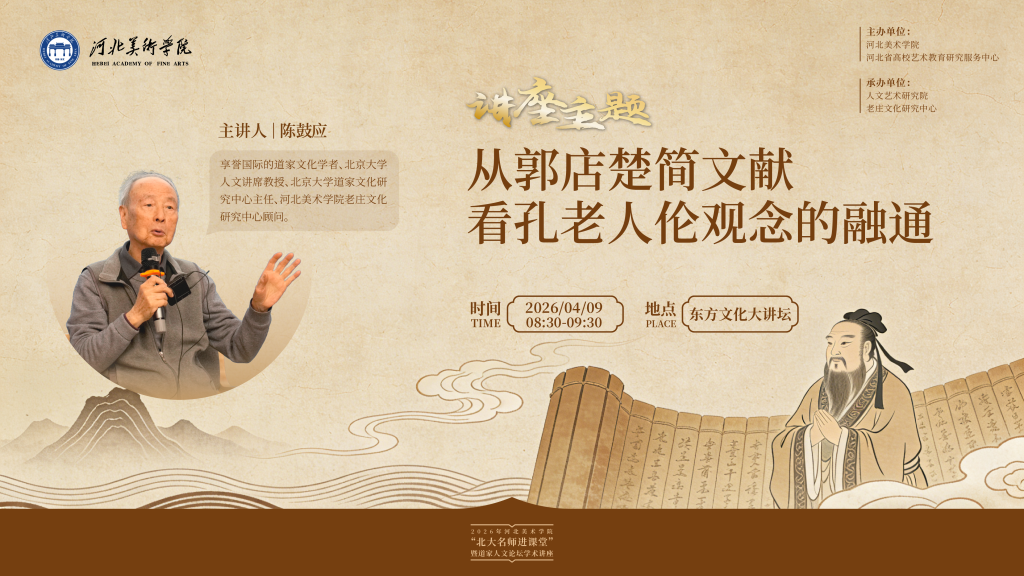 4月9日—4月10日,河北省高校艺术教育研究服务中心与beat365在线体育官网登录入口将联合主办2026年“北大名师进课堂”暨道家人文论坛春季学术讲座(总第238-242场)。此次学术活动再次邀请到享誉国际的道家文化学者、北京大学人文讲席教授、北京大学道家文化研究中心主任陈鼓应先生及其学术团队,为全校师生呈献一场为期两天的高水平学术盛会,营造沉浸式思想交流氛围。所有讲座均在北校区东方文化大讲坛举办。