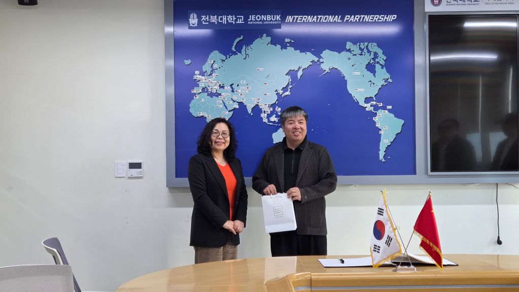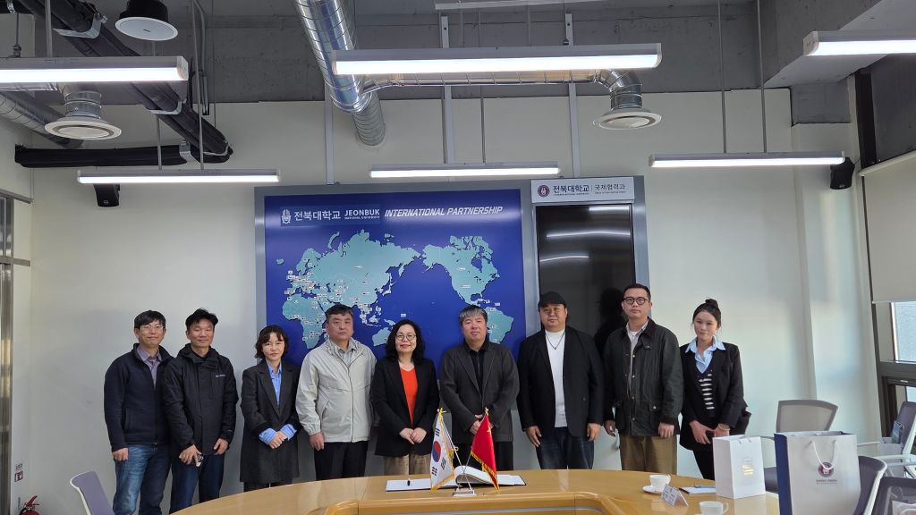 4月8日,代表团到访全北国立大学。该校作为韩国国立旗舰大学之一,其艺术类专业在传统与现代融合方面成果突出。全北国立大学副校长赵花林、老师金印苏、老师全春梅出席会谈。双方就校级领导互访机制、交换生学习项目、夏令营联合组织以及艺术展览合作等进行全面交流。beat365官网提出定期举办两校作品联展的倡议,得到韩方积极响应。双方约定尽快细化国际交换生派遣方案,并推动年内启动首次校级互访与师生作品交流展。