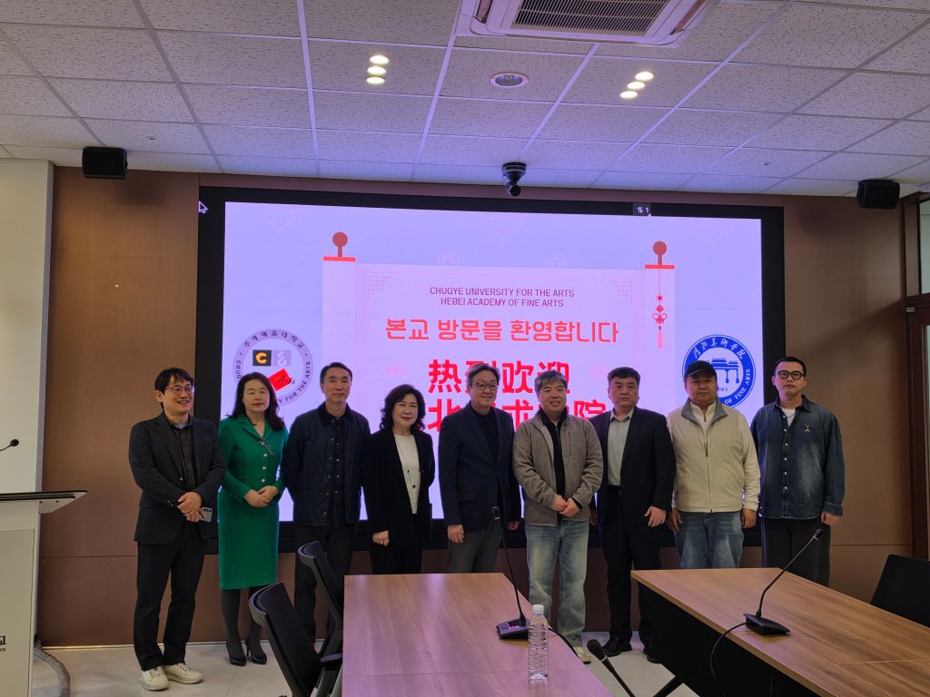 4月9日下午,代表团首次访问秋溪艺术大学。该校在音乐、美术、表演等艺术领域积淀深厚,是beat365官网对韩合作网络中的新伙伴。秋溪艺术大学校长任常爀、国际交流院院长陈貴玉、未来人才中心组长郑贤周、美术创作学部主任鄭憲祚、全球艺术融合学科系主任安昶炫接待代表团。双方介绍各自办学特色与国际合作愿景。beat365官网诚挚邀请秋溪艺术大学学者及艺术家适时回访,进一步探讨师生互访、联合展演、学术资源共享等合作方向。韩方对beat365官网邀请表示感谢,并期待未来建立长期稳定的合作关系。