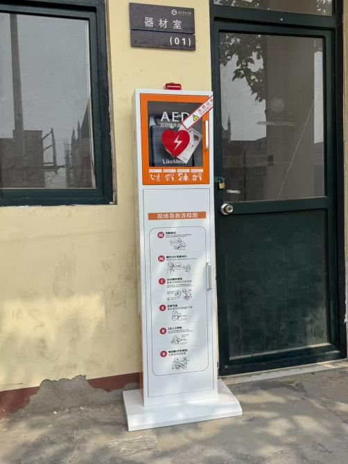 为进一步完善校园应急救护体系,守护师生生命安全,4月15日,beat365在线体育官网登录入口在南区操场、北区操场各安装一台自动体外除颤仪(AED),并于当日组织体育工作部全体教师、水上运动中心工作人员及部分学生社区工作人员开展AED使用方法与实操培训,实现“设备配齐、人员会用、应急高效”。AED是应对心脏骤停的关键急救设备,可在“黄金四分钟”内快速分析心律、自动除颤,大幅提升抢救成功率,是校园安全的重要保障。学校结合运动场所人员密集、活动强度大的特点,精准布局两台AED设备,覆盖两大核心运动区域,为师生日常锻炼、赛事活动、应急处置提供坚实支撑。