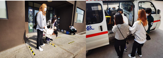 大家分头行动,一边办理一系列封控期间的必要手续,另一边张曌地老师来到学生身边进行照顾。随后120救护车赶到,顺利将学生送往医院。张老师及时向教研室主任进行汇报,好在有惊无险,下午学生完成治疗,顺利返回了学校。事后,张老师还叮嘱学生注意饮食,并持续跟进学生的病情,直到确认学生没有问题了才放下心来。