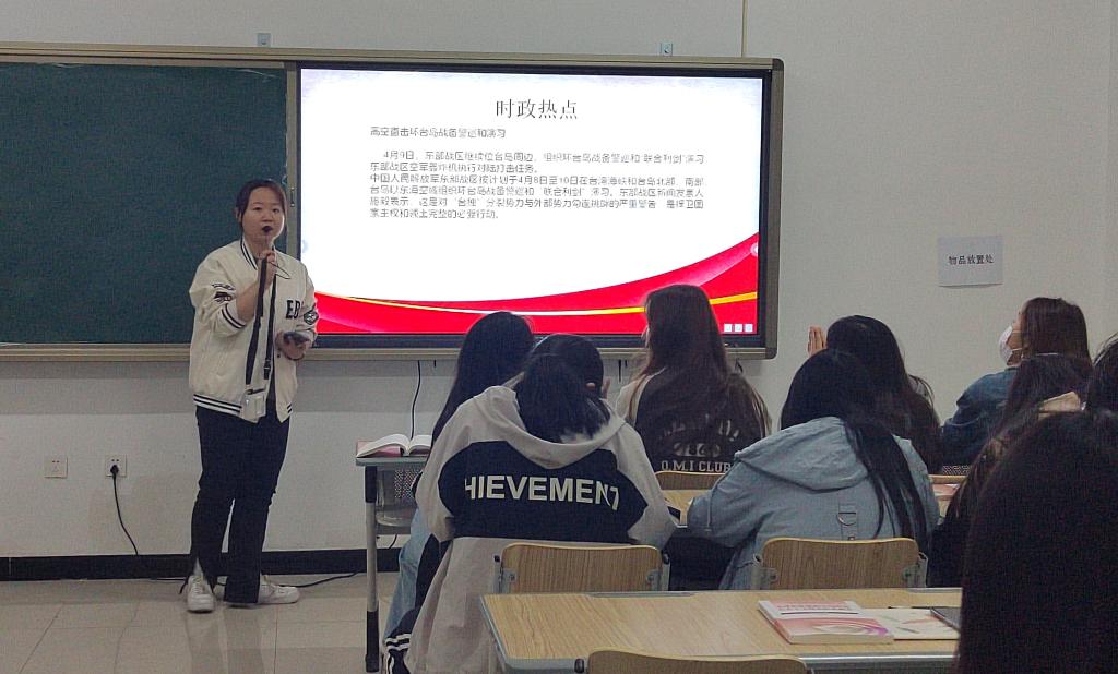 “课前5分钟的新闻热点播报”是李老师在一直坚持做的教学辅助手段。课前播新闻,课上就现场讨论新闻内容,老师与学生间既有严肃的问答环节,也有热闹不止的讨论环节,学生们的积极参与,让课堂气氛热烈起来。课堂上不断引入的时政话题,像“改革开放四十年”、“中美贸易战”、每年的“全国两会”、“一带一路”、“杭州亚运会”、“精准扶贫”等等,让李老师的课堂变得生机盎然,下课后的李老师的学生,一个个都是意犹未尽的样子......
