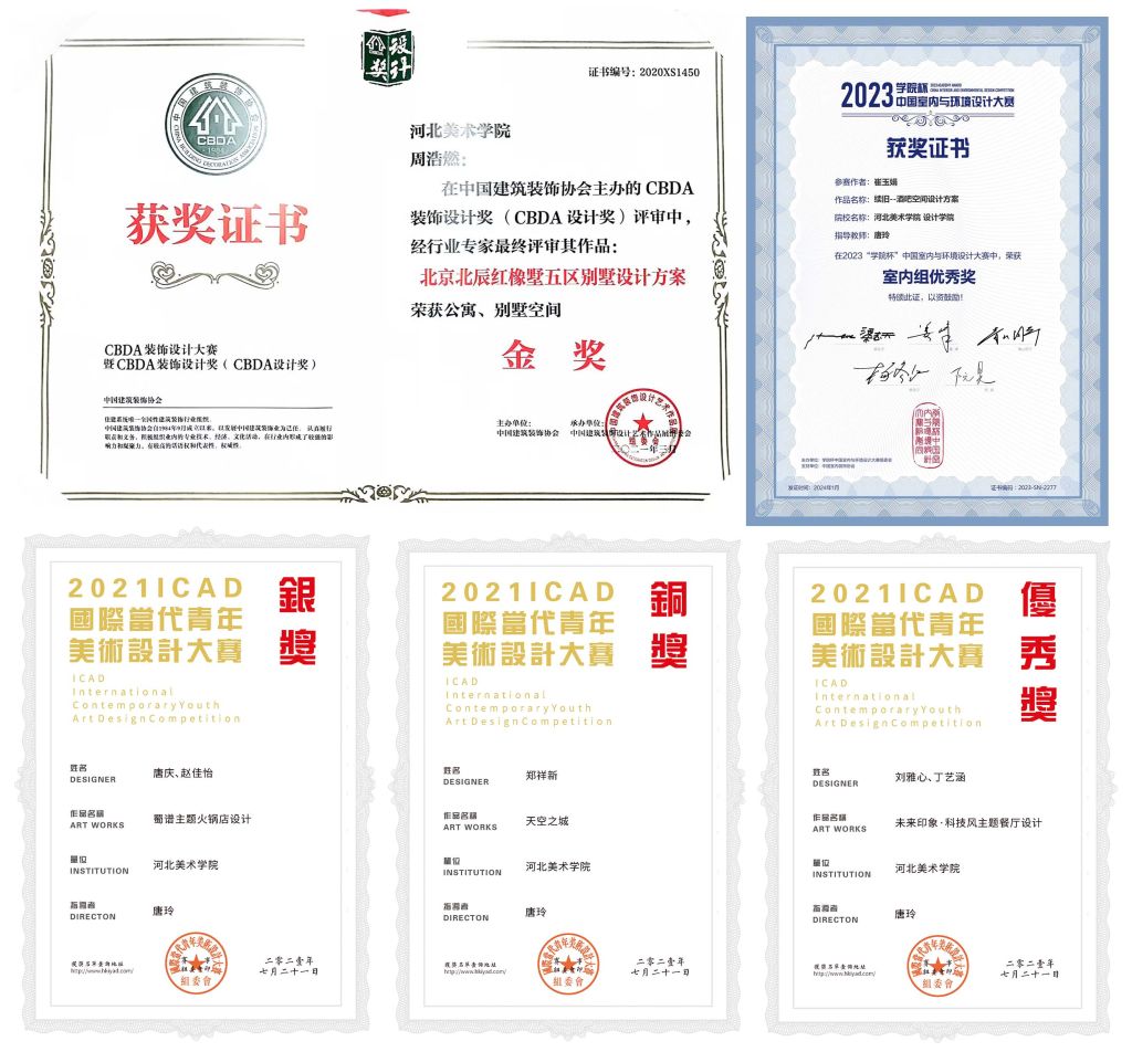 唐老师把“以赛促教,以赛促学”的理念引入到课程教学中,因此,她积极组织学生参加各种实践活动,如社会实践和创新竞赛等,让学生在实践中学习知识、锻炼能力。近几年,她指导周浩燃同学的设计作品《北京北辰红橡墅五区别墅设计方案》获2021年中国建筑装饰协会主办的CBDA装饰设计奖金奖;指导郑祥新、刘雅心、丁艺涵、唐庆、赵佳怡等同学参加2021国际当代青年美术设计大赛分别荣获银奖、铜奖及优秀奖;指导崔玉娟同学设计作品《续旧-酒吧空间设计方案》获中国室内装饰协会主办的2023 “学院杯”中国室内与环境设计大赛室内组优秀奖等。唐老师自己也获得一定成果,她教授的《VI设计》课程在校级教学案例比赛中荣获二等奖;《室内装饰材料与施工工艺》课程荣获第九届全国应用型人才综合技能大赛教师创课比赛三等奖;设计作品《林·寂图书馆设计方案》获中国包装联合会主办的2023中国包装创意设计大赛专业组优秀奖;《绿简--办公空间设计方案获》中国建筑装饰协会主办的CBDA装饰设计奖银奖等。