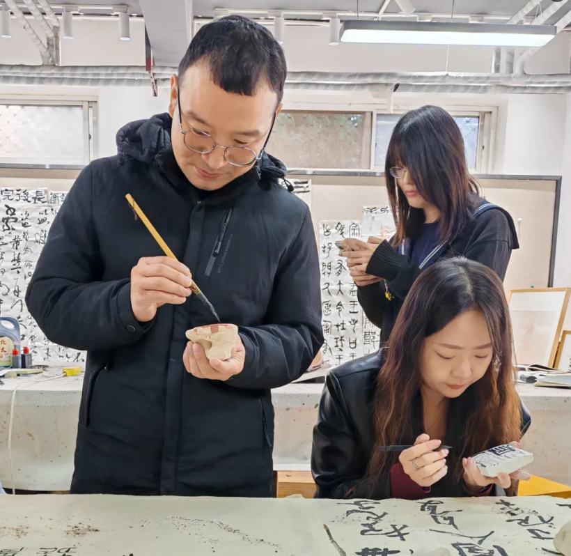 “望青年奋袂而起,以笔为剑,以梦为马,辟时代新章,铸盛世风华。”王老师给予当代青年厚望,讲求立德树人的同时不断究其长远,让陶瓷印走向社会,篆刻艺术面向全领域。未来,王老师将继续在教育与创作中砥砺前行,为书法艺术的发展和中华文化的传播贡献自己的力量。