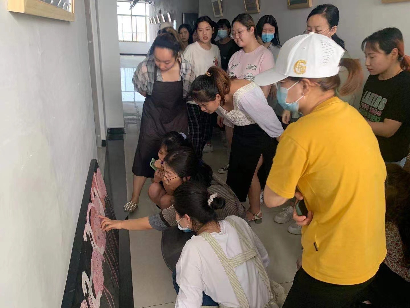 由于大漆材质的特殊性(干燥需要特殊的环境、漆酚会使人过敏等),这要求漆画专任教师具备较强的耐心和毅力,才能指导学生创作出完整的漆画作品。在教学过程中,有的学生因大漆过敏皮肤红肿,有的学生因漆画打磨磨出水泡,还有的学生因铺漆过厚导致漆画不干,无法继续创作......为了不让学生灰心和懈怠,孔老师针对不同的情况及时给予学生安慰和指导。在一次日常授课中,毕业班学生吕潇洋在漆画创作调整阶段,不小心被刻刀划破左手,伤口较深,流血不止,吕潇洋同学痛得不停地哭,周围的同学也被吓坏了。孔祥凤老师迅速带他去校医务室进行伤口包扎,随后又带他去县医院进行进一步处理。在这个过程中,孔老师细心体贴,及时给予学生关怀,并及时与家长沟通。之后的课堂上,孔老师多次为学生示范刻刀的正确使用方法,强调错误用刀的危险性,防止类似事件再次发生。