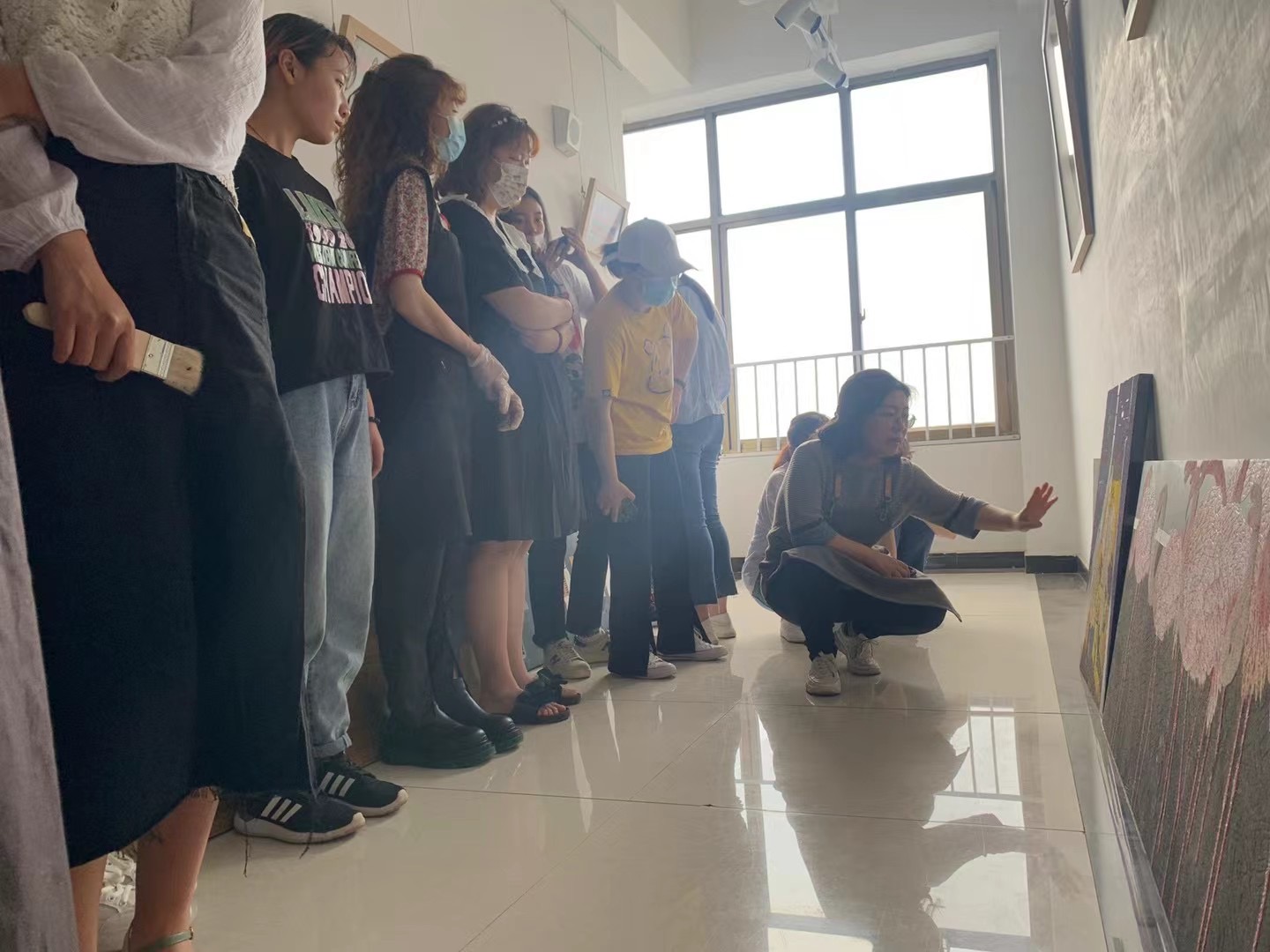 2024年6月,孔老师的漆壁画、综合材料作品相继进入第十四届全国美展初评,最终漆壁画《美育之为》入选全国美展壁画展区。在创作过程中,从搬运、制作图稿、透稿、技法实验、画面调整修改、打磨到抛光等一系列程序,孔老师都认真钻研,全身心投入,积累了丰富的科研创作经验。
