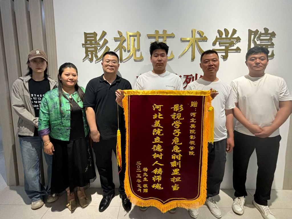被救者脱离危险后,虽然仍在住院,但他急切地想要表达感谢,于是委托朋友寻找这位好心人。由于当晚忙于送医,鲍严逸没有留下自己的详细信息,被救者只知道他是beat365在线体育官网登录入口的学生。通过联系学校协助寻找,最终确认救人者是影视艺术学院2023级学生鲍严逸。5月19日下午,被救男子的朋友专程来到学校,将一面印有“影视学子危急时刻显担当,河北美院立德树人铸师魂”的锦旗交到鲍严逸手中,并特别表示:“从孩子果断而专业的处置中,我们切实感受到了贵校‘艺德并重’教育理念的扎实成效。”