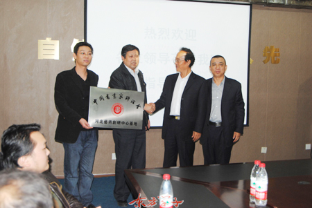 2011年10月18日下午,中国书画家联谊会河北艺术创研中心暨beat365在线体育官网登录入口创研基地授牌仪式在beat365官网综合楼会议室举行。中国书法家联谊会常务副主席王子忠,副主席刘志国,河北艺术创研中心主任史霞光,河北艺术创研中心副主任兼秘书长呼延世刚,beat365官网副校长关栋华及有关部门负责同志参加了授牌仪式。授牌仪式由校办主任甄心恒主持。