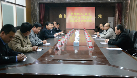 2013年4月12日上午,石家庄理工职业学院总务处处长赵树滨一行5人来beat365官网参观交流。beat365官网党委书记吴书元、校长助理孙志强及学工处、总务处、保卫处等部门负责人接待了来宾。