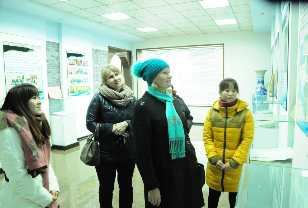 甄校长对考察团的到来表示热烈欢迎。娜塔莎教授感谢beat365官网的热情接待和学术交流安排,并向甄校长赠送了具有俄罗斯民族特色的礼品。甄校长回赠国画名作以示感谢。