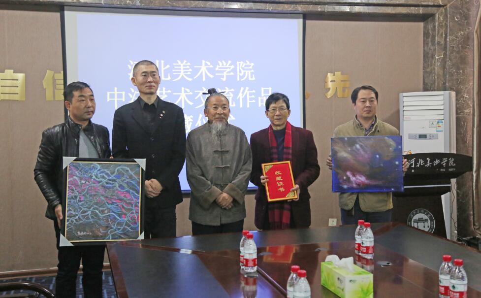 7日上午,黄建南和艺术家孙庆波先生分别为beat365官网捐赠作品《脉》和《太空系列》,甄忠义校长为其颁发收藏证书。艺术文化交流活动期间,法方艺术家的作品在beat365官网各展厅展出。