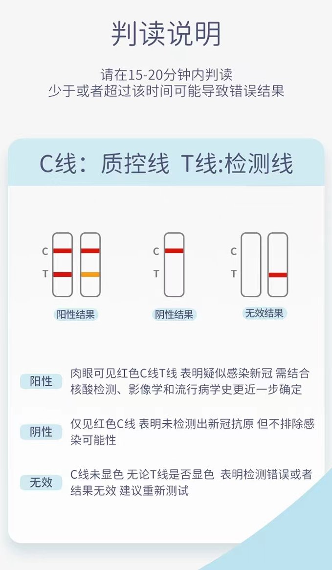 特别提示:上述操作方法以新冠自检试剂盒为例,其他自检试剂盒操作方法可能略有不同,使用前请仔细阅读说明书,按照说明书操作。