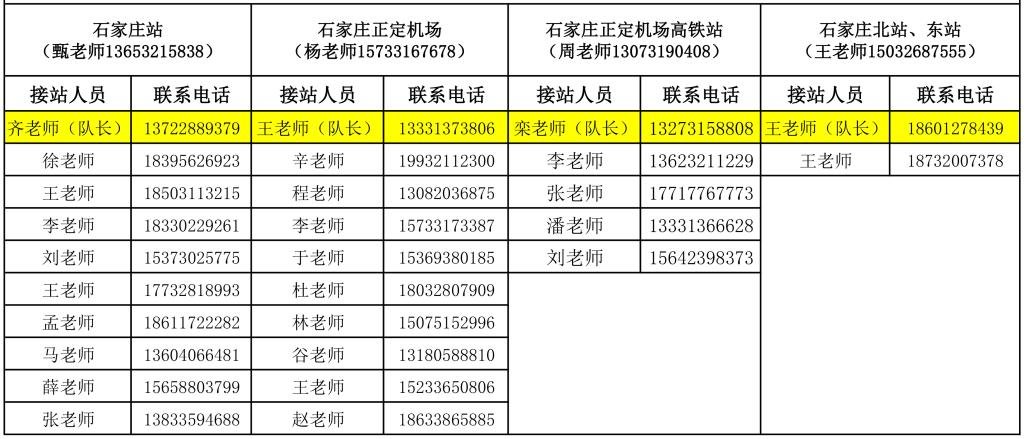 10月15日第二批次学生报到接站人员名单