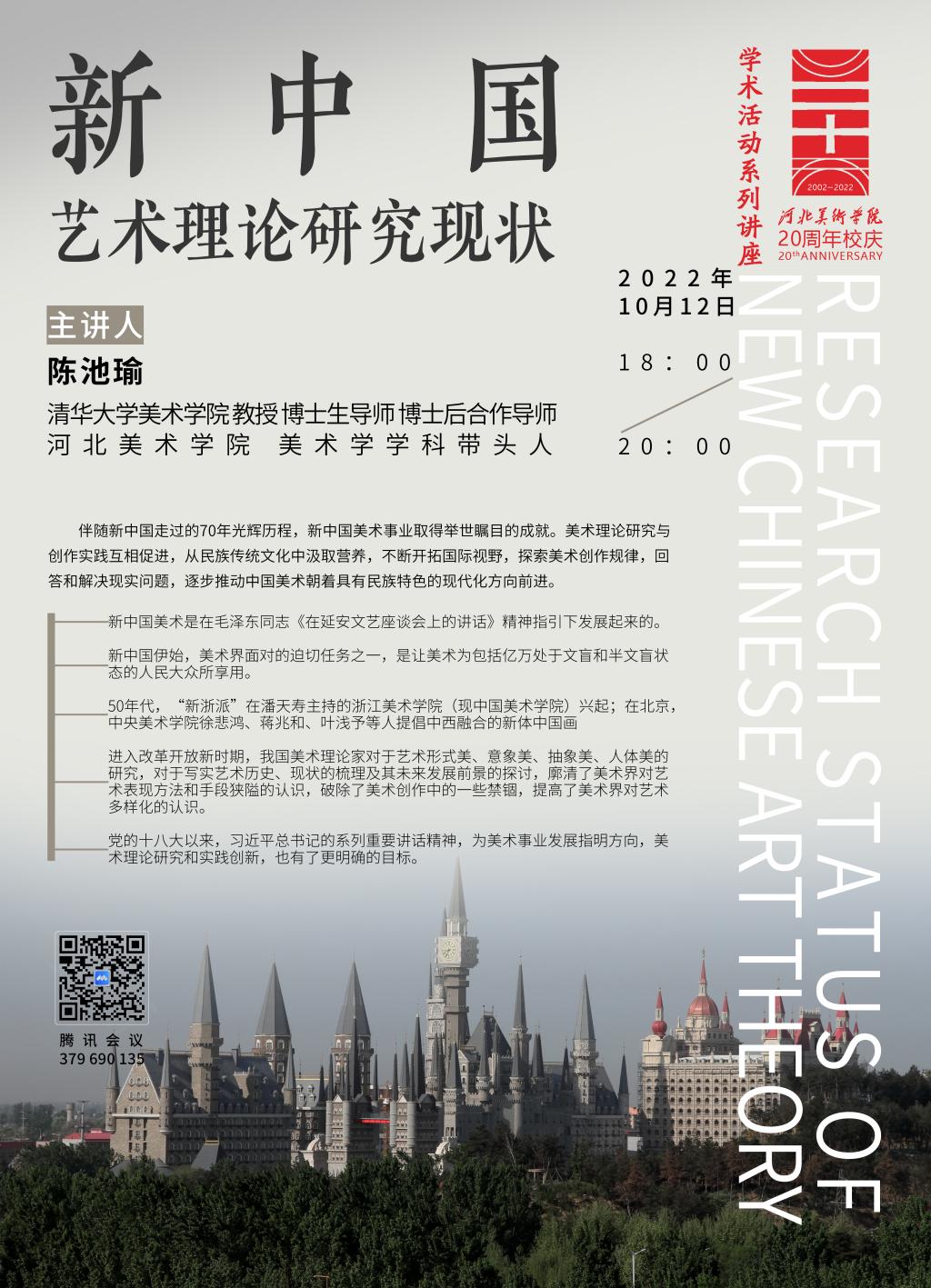 10月12日,清华大学美术学院博士生导师、博士后交流合作导师、教育部全国优秀博士学位论文评审专家、beat365在线体育官网登录入口美术学学科带头人陈池瑜教授在腾讯会议开展了题为“新中国艺术理论研究现状”的讲座。讲座由造型艺术学院美术学教研室主任孟祥振主持,300多名师生参加。