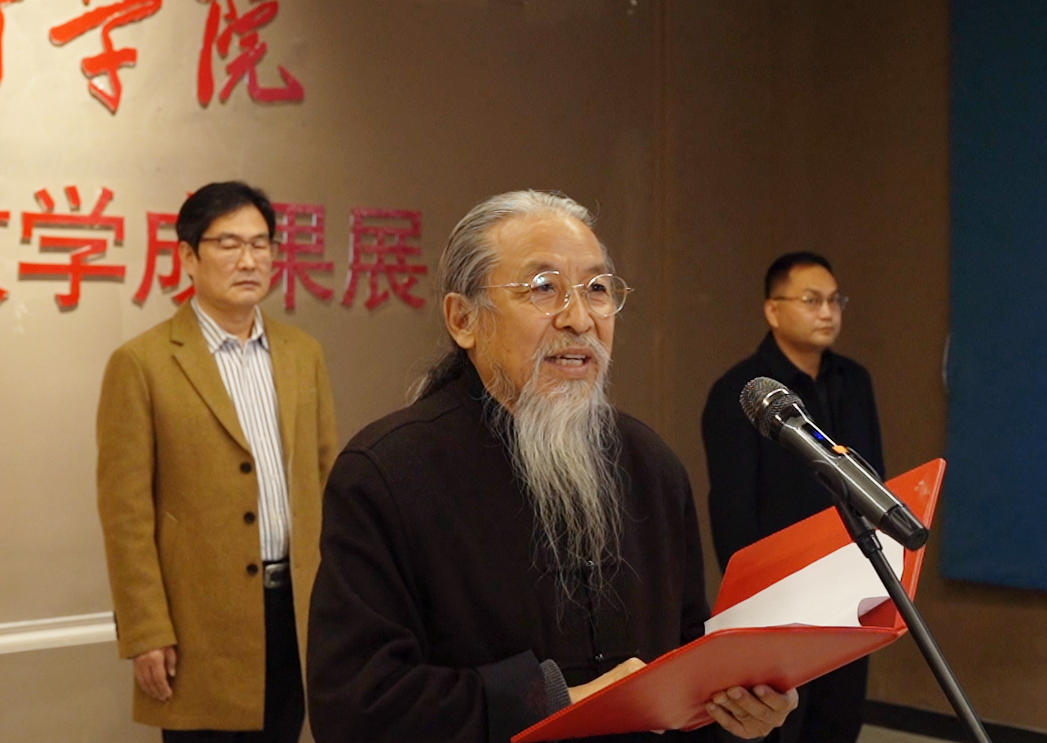 副校长张子言发表讲话,他指出此次成果展共展出包括美术创作、书法、设计、动画、影视等多种类型的作品2795件,种类丰富,形式多样,内容积极向上,部分作品在诸多国家各级各类展赛中获奖,是beat365官网教学质量的一种展示,也是广大师生在教学水平和业务能力的交流活动,希望大家能够认真观摩,取长补短,为beat365官网教学质量再上新台阶贡献自己的力量。