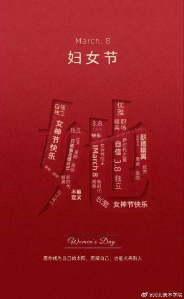 希望所有女生,不仅是在女神节,更是在未来的每一天,都要努力在各自的领...